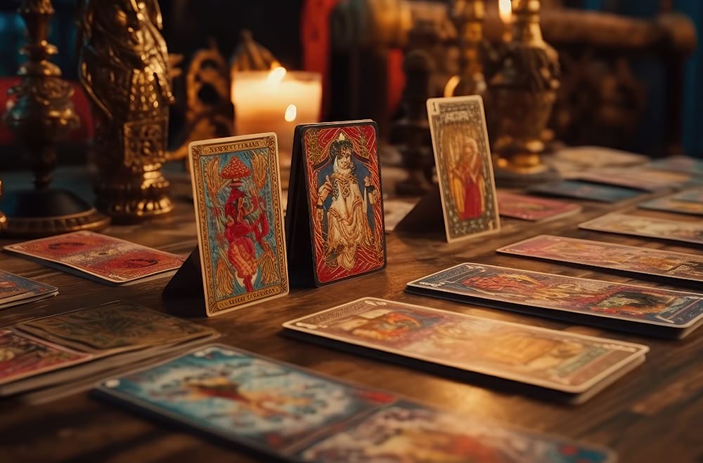 Tarotkarten: Das Legen und Deuten von Tarotkarten ist wohl eine der bekanntesten Methoden. Die Karten zeigen Bilder und Symbole, die uns auf verborgene Weisen führen können.